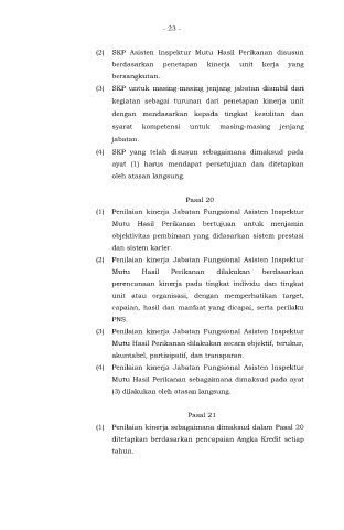 (1) Penilaian kinerja sebagaimana dimaksud dalam Pasal 20