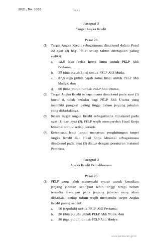 (2) Target Angka Kredit sebagaimana dimaksud pada ayat (1)