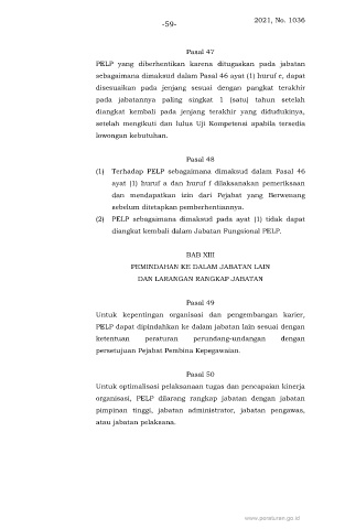 PELP dapat dipindahkan ke dalam jabatan lain sesuai dengan