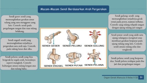 Macam-Macam Sendi Berdasarkan Arah Pergerakan Organ Gerak Manusia II Kelas V SD