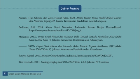 Daftar Pustaka Organ Gerak Manusia II Kelas V SD