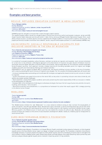 More information: https://ufmsecretariat.org/project/mediterranean-initiative-for-jobs-med4jobs/ the refugee crisis in Europe by strengthening knowledge sharing, peer-support and academic partnership among Higher Education