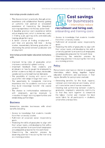 Relevant arguments in favour of internships from the academic, businesses and policymakers shortening the period between graduation and • Modelling the skills of graduates to align with