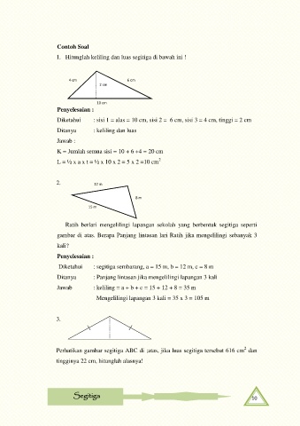 Jawab : keliling = a + b + c = 15 + 12 + 8 = 35 m