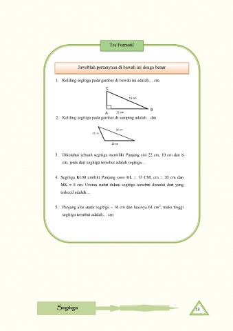 1. Keliling segitiga pada gambar di bawah ini adalah… cm