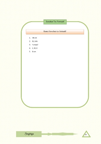 Jawaban Tes Formatif Kunci Jawaban tes formatif 1. 36 cm 2. 8,1 dm 3. Tumpul 4. L, M, K 5. 8 cm Segitiga 14