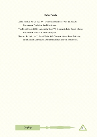 Tim Kemdikbud. (2017). Matematika Kelas VII Semester 2. Edisi Revisi. Jakarta: