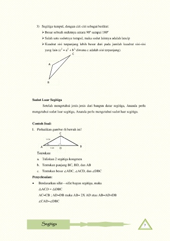 3) Segitiga tumpul, dengan ciri-ciri sebagai berikut: