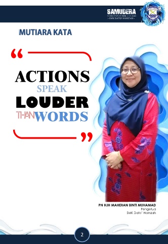 SAMUDERA “ ACTIONS LOUDER THAN WORDS “ PN HJH MAHERAN BINTI MUHAMAD Pengetua SMK Dato’ Hamzah 2