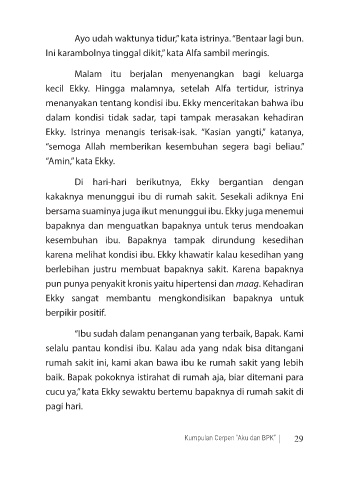 kesembuhan ibu. Bapaknya tampak dirundung kesedihan