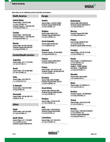 General Sales: 1 800 979 4342 Technical Support: 0800 80410 na.techsupport@widia.com