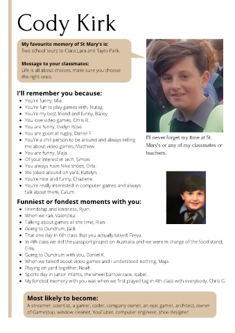 My fondest memory with you was when we first played tag in 4th class with everybody, Chris G.