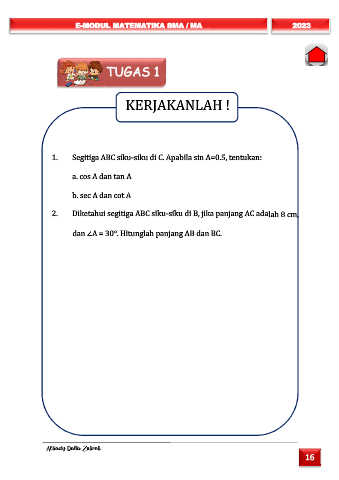 1. Segitiga ABC siku-siku di C. Apabila sin A=0.5, tentukan: