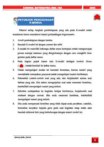 4. Pada bagian pojok kanan atas E-modul terdapat tombol Home