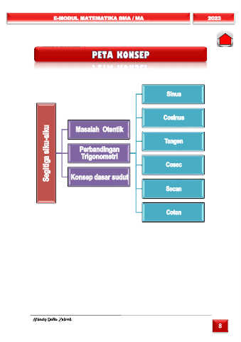 E-MODUL MATEMATIKA SMA / MA 2023 PETA KONSEP Sinus Cosinus Segitiga siku-siku Perbandingan Tangen Masalah Otentik Trigonometri Cosec Konsep dasar sudut Secan Cotan Alhady Daffa Zuhrah