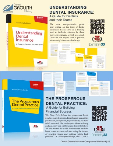 The most comprehensive guide ever written on the topic of dental insurance. It can serve as a training tool, an in-depth reference for those more experienced, as well as a quick %u201clook-up%u201d for anyone with a question about today%u2019s insurance landscape.%u201cDr. Tony Feck defines the prosperous dental practice in all its aspects. From hiring, leadership, production, and growth, to profitability; no stone is left unturned. The roadmap to follow is clearly and concisely laid out for every dentist to follow. All you have to do is take the first step: read the book, cover to cover and start using the dozens of practical forms and outlines which Feck provides.%u201d Dr. Christopher Phelps, DMD CMCTUNDERSTANDING DENTAL INSURANCE:A Guide for Dentists and their TeamsTHE PROSPEROUS DENTAL PRACTICE:A Guide for Building Financial SuccessDental Growth Machine Companion Workbook| 49