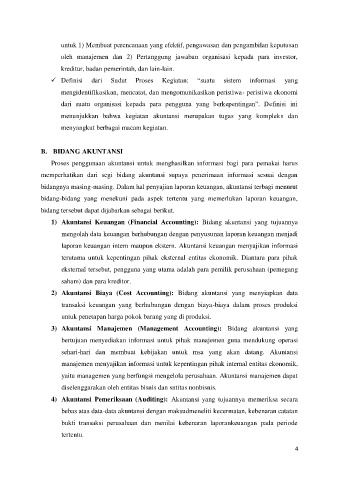 bidang-bidang yang menekuni pada aspek tertentu yang memerlukan laporan keuangan,