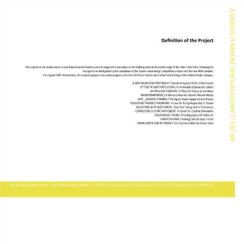 The projects of our studio rely on a near futural transforma on scenario imagined to take place on the building stock at the eastern edge of the Taksim Gezi Park, following the A L