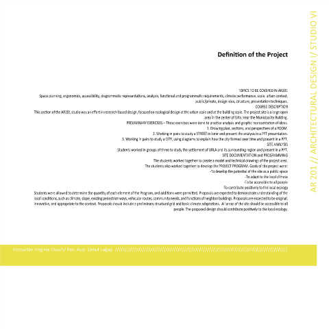 This sec on of the AR201 studio was an effort in research-based design, focused on ecological design at the urban scale and at the building scale. The project site is a large open
