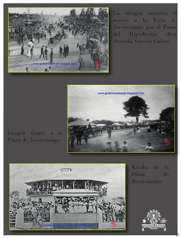 La imagen muestra el acceso a la Feria de Jocotenango por el Paseo del Hipodromo (hoy Avenida Simeon Cañas) Imagen frente a la Plaza de Jocotenango Kiosko de la Plaza de Jocotenango 27