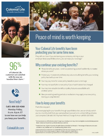 to see how we can help Just complete Colonial Life’s Payment Method Change form or call 800-325-4368.