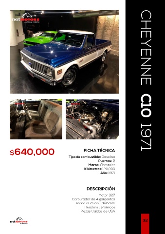 $640,000 FICHA TÉCNICA CHEYENNE C10 1971