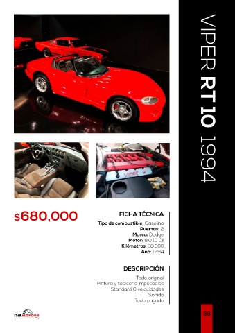 $680,000 FICHA TÉCNICA VIPER RT 10 1994