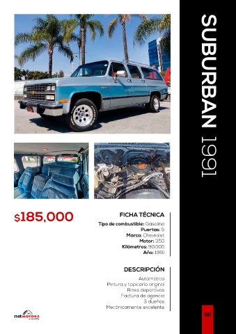 $185,000 FICHA TÉCNICA SUBURBAN 1991