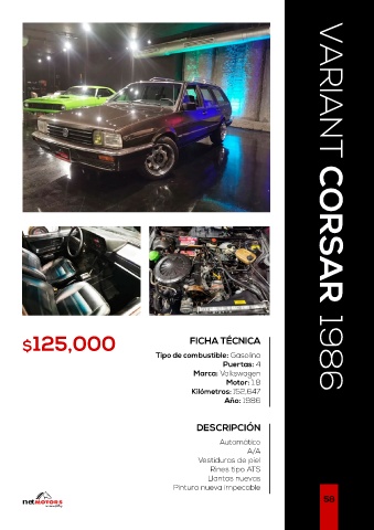 $125,000 FICHA TÉCNICA VARIANT CORSAR 1986