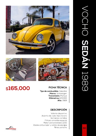 $165,000 FICHA TÉCNICA VOCHO SEDÁN 1989