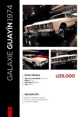 YÍN 1974 GALAXIE GUA $115,000 FICHA TÉCNICA Tipo de combustible: Gasolina Marca: Ford Kilómetros: 120,00 Año: 1974 DESCRIPCIÓN Motor en perfecto estado Pintura y tapicería impecables Excelente manejo net 69 Car Collection Gallery