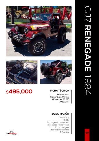 $495,000 FICHA TÉCNICA CJ7 RENEGADE 1984