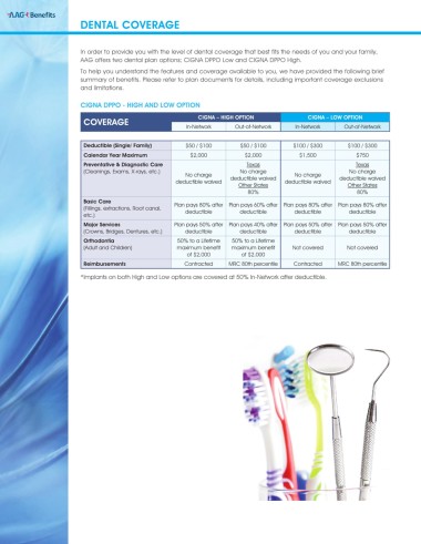 AAG offers two dental plan options; CIGNA DPPO Low and CIGNA DPPO High.