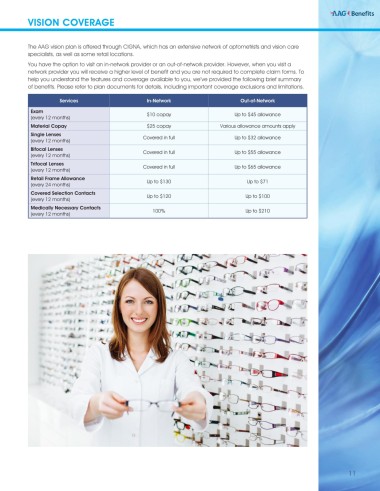 The AAG vision plan is offered through CIGNA, which has an extensive network of optometrists and vision care