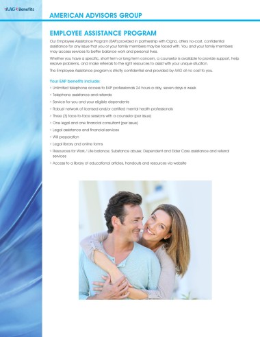 The Employee Assistance program is strictly confidential and provided by AAG at no cost to you.
