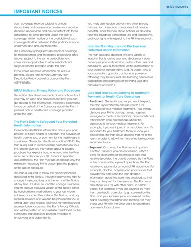 PHI, and to give you this Notice about its privacy » Payment: Of course, the Plan’s most important