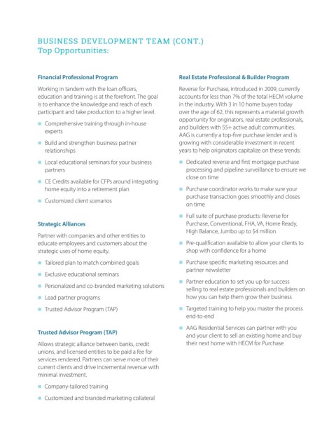 n Local educational seminars for your business n Dedicated reverse and first mortgage purchase