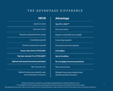 **To be eligible for the Advantage Fixed or Advantage Flex, borrowers must be at least age 60 at time of loan closing. 7