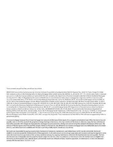 from other proceeds. AAG charges an origination fee, mortgage insurance premium, closing costs and servicing fees (added to the balance of the loan). The