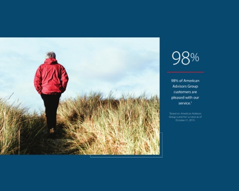98 % 98% of American Advisors Group customers are pleased with our 1 service. 1 Based on American Advisors Group customer surveys as of October 31, 2019.