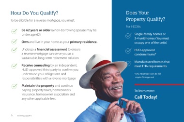 To be eligible for a reverse mortgage, you must: Property Qualify?