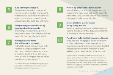 7 Purchase another home 10 Using a reverse mortgage to pay off credit cards
