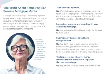 Reverse Mortgage Myths No. When taking out a reverse mortgage loan, you