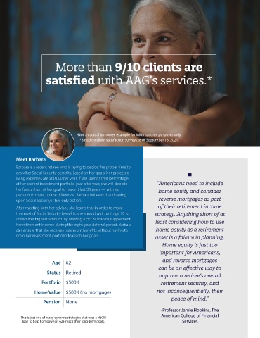 upon Social Security is her only option. reverse mortgages as part