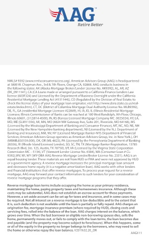 NMLS# 9392 (www.nmlsconsumeraccess.org). American Advisors Group (AAG) is headquartered