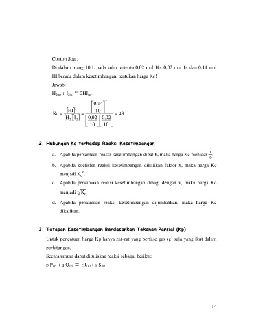 d. Apabila persamaan reaksi kesetimbangan dijumlahkan, maka harga Kc