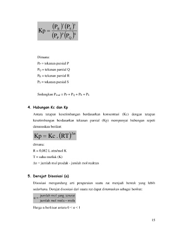 kesetimbangan berdasarkan tekanan parsial (Kp) mempunyai hubungan sepeti