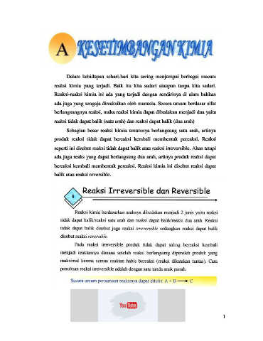 Sebagian besar reaksi kimia umumnya berlangsung satu arah, artinya