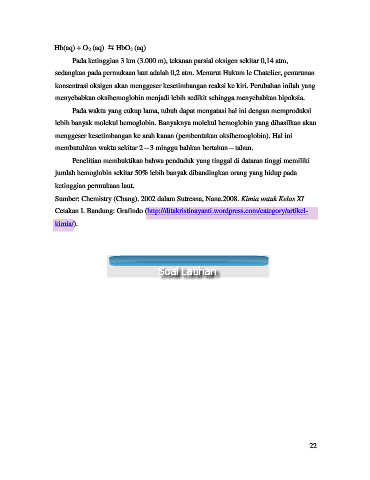 sedangkan pada permukaan laut adalah 0,2 atm. Menurut Hukum le Chatelier, penurunan