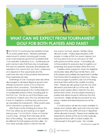 PGA Tour will be up and running once again              negative for the virus within 24 hours of departure